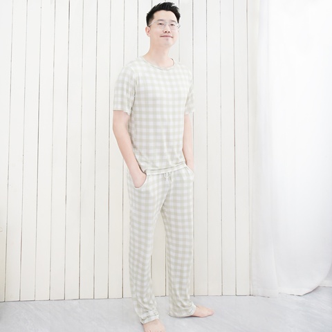 وصل حديثًا فستان ليلي من الخيزران فسكوز على الطراز الشعبي مع أزرار للاستخدام المنزلي طقم ملابس نوم رجالية قابلة للتنفس