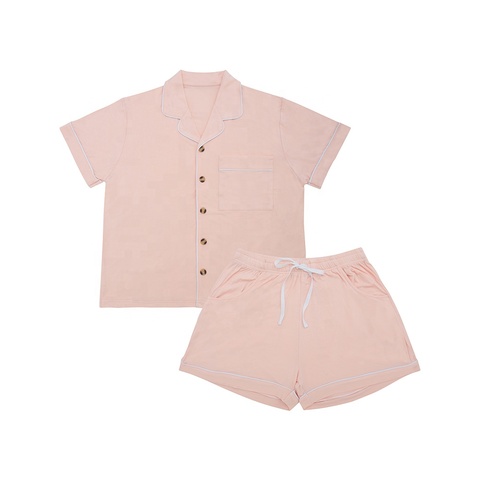 طقم بيجامة مطبوع حسب الطلب من المصنع مباشرة ، ملابس نوم نسائية من الخيزران الناعم يسمح بمرور الهواء ، طقم نسائي مرن من الخيزران
