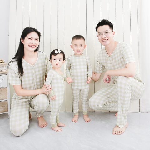 وصل حديثًا طقم ملابس نوم عائلية من الخيزران فسكوز مسامي ليلي أنيق مع أزرار للاستخدام المنزلي ملابس عائلية متطابقة