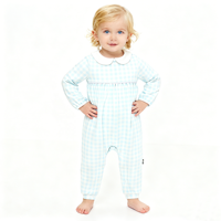 磁気ボタン竹超ソフトユニセックス幼児用サマープリント長袖クロージャーニットベイビーロンパー