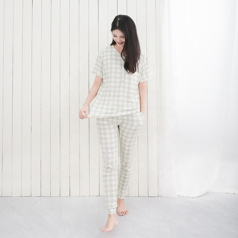 ダイレクトファクトリーカスタムプリントレディパジャマセットエクストラソフト通気性竹レディースパジャマエラスティックナイトウェアプレーンプリント